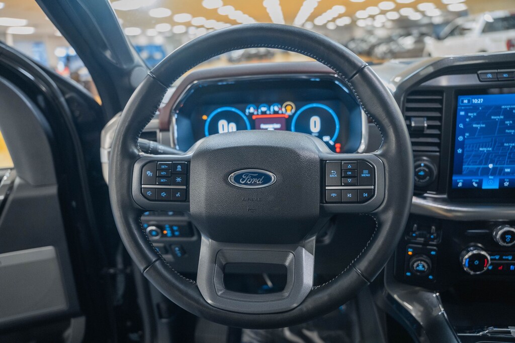 PANORAMIC ROOF / DUAL SUNROOFS / TWIN PANEL MOONROOF, POWER MOONROOF / SUNROOF / POWER TILT SLIDING ROOF, VOICE ACTIVATED NAVIGATION, NAVIGATION / GPS / NAV, FORD CO-PILOT360, BLIS / BLIND SPOT MONITORING / BLIND SIDE ALERT, DYNAMIC RADAR CRUISE CONTROL / ADAPTIVE CRUISE CONTROL / SMART CRUISE CONTROL, LANE DEPARTURE WARNING, LANE DEPARTURE ALERT / LANE KEEPING ALERT, REARVIEW CAMERA / BACK UP CAMERA / REVERSE CAMERA, REAR VIEW CAMERA WDYNAMIC GUIDELINES, ANDROID AUTO & APPLE CARPLAY, LEATHER SEATS, HEATED & COOLED FRONT ROW SEATS, HEATED FRONT ROW SEATS, HEATED SECOND ROW SEATS, POWER WINDOWS & LOCKS, FOUR WHEEL DRIVE / 4WD / 4X4, STEERING WHEEL AUDIO CONTROLS, CRUISE CONTROL, SYNC 4, WIRELESS CHARGING, REMOTE START, REAR CROSS TRAFFIC ALERT, PUSH-BUTTON START, POWER TAILGATE LOCK, POWER SLIDING REAR WINDOW, BLUETOOTH AUDIO STREAMING, HEATED STEERING WHEEL, ECO BOOST ENGINE, DUAL ZONE A/C CONTROLS, BLUETOOTH, BACK UP SENSORS, B&O SOUND SYSTEM, AUTO HIGH BEAMS, 36 GALLON TANK / 36 GAL TANK, 145" WHEELBASE, 4WD, 2nd Row Heated Seats, 4-Wheel Disc Brakes, 8 Speakers, ABS brakes, Accent-Color Angular Step Bars, Air Conditioning, Alloy wheels, AM/FM radio: SiriusXM with 360L, Auto High-beam Headlights, Automatic temperature control, Body-Color Front & Rear Bumpers, Box Side Decals, Brake assist, Chrome Single-Tip Exhaust, Chrome wheels, Class IV Trailer Hitch Receiver, Compass, Connected Built-In Navigation, Dark 2-Bar & 1 Minor Bar Style Grille, Electronic Locking w/3.55 Axle Ratio, Electronic Stability Control, Equipment Group 502A High, Evasive Steering Assist, Exterior Parking Camera Rear, Ford Co-Pilot360 Assist 2.0, Front Bucket Seats, Front Center Armrest, Front dual zone A/C, Front fog lights, Front reading lights, Fully automatic headlights, GVWR: 6,600 lbs Payload Package, Heated front seats, Heated steering wheel, Integrated Trailer Brake Controller, Intelligent Adaptive Cruise Control w/Stop & Go, Intersection Assist, Lariat Sport Appearance Package, LED Projector w/Dynamic Bending Headlamps, Low tire pressure warning, Navigation System, Navigation system: Connected Navigation, Panic alarm, Passenger door bin, Power driver seat, Power passenger seat, Power steering, Power Tilt/Telescoping Steering Column w/Memory, Power windows, Pro Trailer Backup Assist & Pro Trailer Hitch Assist, Radio data system, Radio: B&O Sound System by Bang & Olufsen, Rain-Sensing Wipers, Rear window defroster, Remote keyless entry, Security system, Speed control, Speed Sign Recognition, Speed-sensing steering, Split folding rear seat, Steering wheel mounted audio controls, SYNC 4 w/Enhanced Voice Recognition, Traction control, Trailer Tow Package, Twin Panel Moonroof, Variably intermittent wipers, Ventilated front seats, Wheels: 20" Chrome-Like PVD, Wireless Charging Pad. 2023 Ford F-150 Lariat 4WD Agate Black Metallic 2.7L V6 EcoBoost