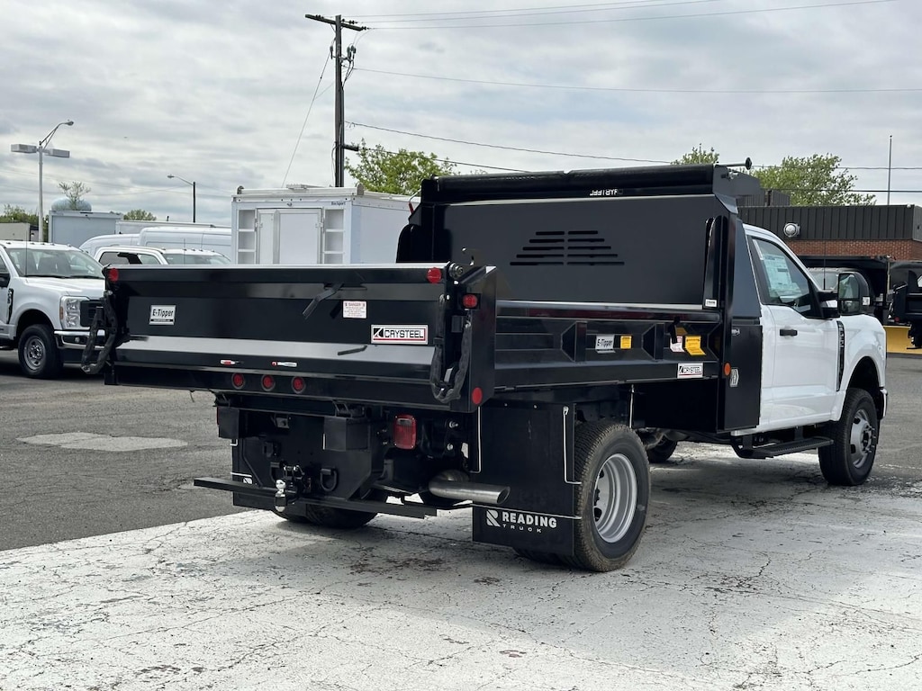 XL F-350 Regular Cab 4x4, 9' Contractor Dump With I Pack Tool Box, Short Side Dump, 7.3 Liter V8 Gas Engine, Dual Rear Wheels, 4.30 Limited Slip Rear Axle, Running Boards, Snow Plow Prep Package, 14,000 GVWR, Roof Clearance Lights, Dual Batteries, XL Chrome Package, Oxford White.