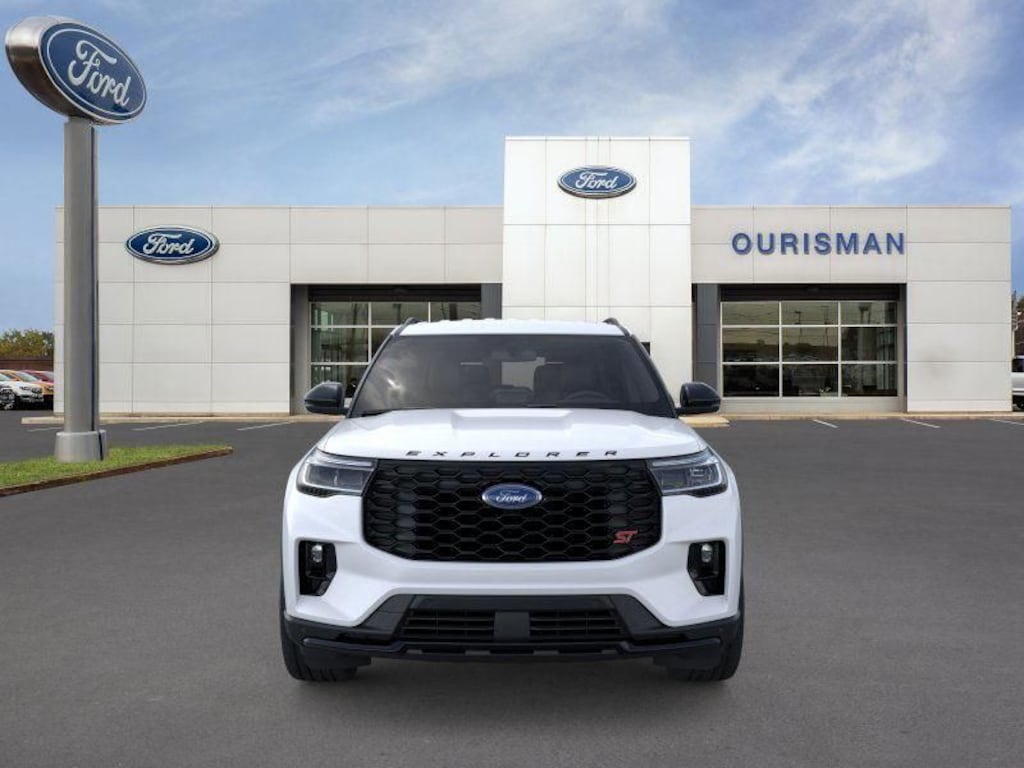 2025 Ford Explorer ST White 4WD 3.0L EcoBoost V6 FORD CO-PILOT360, REARVIEW CAMERA / BACK UP CAMERA / REVERSE CAMERA, ANDROID AUTO & APPLE CARPLAY, HANDS FREE LIFTGATE / POWER LIFT GATE / AUTOMATIC LIFT GATE, HEATED & COOLED FRONT ROW SEATS, HEATED SECOND ROW SEATS, POWER WINDOWS & LOCKS, FOUR WHEEL DRIVE / 4WD / 4X4, STEERING WHEEL AUDIO CONTROLS, SYNC 4, WIRELESS CHARGING, REMOTE START, PUSH-BUTTON START, PADDLE SHIFTERS / COMMANDER SWITCH, HEATED WOOD & LEATHER TRIMMED STEERING WHEEL, ECO BOOST ENGINE, BLUETOOTH, 3 ROW SEATS / THIRD ROW SEATS, 119" WHEELBASE, CLASS III TRAILER TOW PKG, 4WD, Equipment Group 400A Standard Package, Wheels: 21" Magnetite-Painted Aluminum.