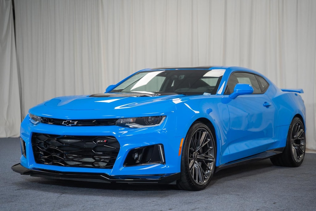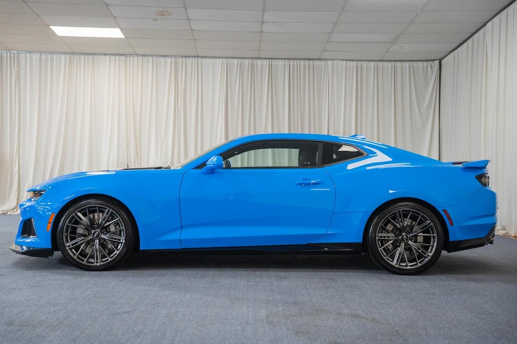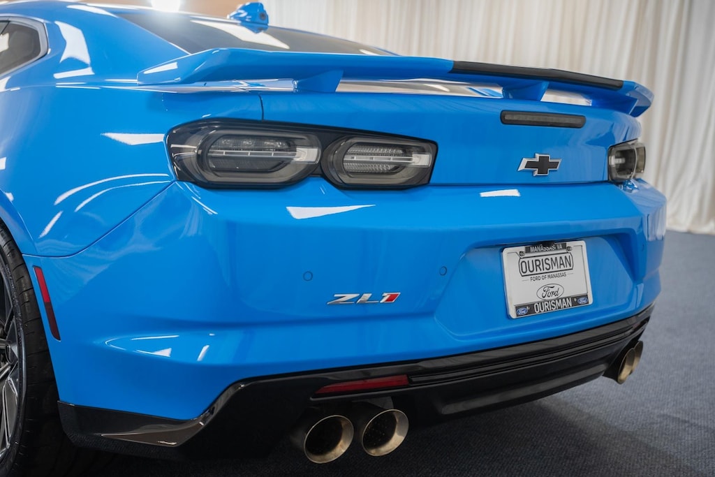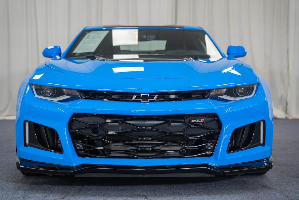 BLIS / BLIND SPOT MONITORING / BLIND SIDE ALERT, LANE DEPARTURE WARNING, LANE DEPARTURE ALERT / LANE KEEPING ALERT, REARVIEW CAMERA / BACK UP CAMERA / REVERSE CAMERA, REAR VIEW CAMERA WDYNAMIC GUIDELINES, ANDROID AUTO & APPLE CARPLAY, LEATHER SEATS, HEATED & COOLED FRONT ROW SEATS, HEATED FRONT ROW SEATS, POWER WINDOWS & LOCKS, STEERING WHEEL AUDIO CONTROLS, CRUISE CONTROL, REAR CROSS TRAFFIC ALERT, PUSH-BUTTON START, PREMIUM AUDIO W/INTEGRATED NAV & APP STE, PREMIUM AUDIO SOUND SYSTEM, BLUETOOTH AUDIO STREAMING, BLUETOOTH & BLUETOOTH STREAMING, BLUETOOTH HANDS-FREE PHONE SYSTEM, ONE OWNER, DUAL ZONE A/C CONTROLS, BLUETOOTH, BACK UP SENSORS, AUTO HIGH BEAMS, 4-Wheel Disc Brakes, 6-Way Power Front Passenger Seat Adjuster, 8-Way Power Driver Seat Adjuster, 9 Speakers, ABS brakes, Adaptive suspension, Air Conditioning, Alloy wheels, AM/FM radio: SiriusXM with 360L, Apple CarPlay/Android Auto, Automatic temperature control, Black Lug Nuts (LPO), Black Wheel Locks (LPO), Black Wheel Lug Nuts & Locks Package (LPO), Bluetooth® For Phone, Bose Premium 9-Speaker Audio System Feature, Brake assist, Bumpers: body-color, Compass, Delay-off headlights, Electronic Stability Control, Exterior Parking Camera Rear, Four wheel independent suspension, Front Bucket Seats, Front Center Armrest, Front dual zone A/C, Front reading lights, Fully automatic headlights, Heated Driver & Front Passenger Seats, Heated front seats, Heated steering wheel, High-Intensity Discharge Headlights, Illuminated entry, Leather-Trimmed Seat Trim w/Sueded Inserts, Low tire pressure warning, Panic alarm, Passenger door bin, Power driver seat, Power passenger seat, Power steering, Power windows, Preferred Equipment Group ZL1, Premium audio system: Chevrolet Infotainment System, Radio data system, Radio: Chevrolet Infotainment 3 Plus System, Rear Park Assist, Rear window defroster, RECARO Performance Front Bucket Seats, Remote keyless entry, Security system, SiriusXM w/360L, Speed control, Speed-sensing steering, Spoiler, Steering wheel mounted audio controls, Tilt steering wheel, Tire Inflation Kit, Traction control, Trip computer, Variably intermittent wipers, Ventilated Driver & Front Passenger Seats, Ventilated front seats, Voltmeter, Wheels: 20" x 10" Fr & 20" x 11" Rr Dark Graphite. 2023 Chevrolet Camaro ZL1 RWD Rapid Blue 6.2L V8 Supercharged