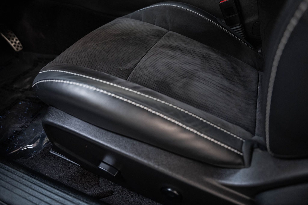 - Simulated suede/leather seat upholstery
