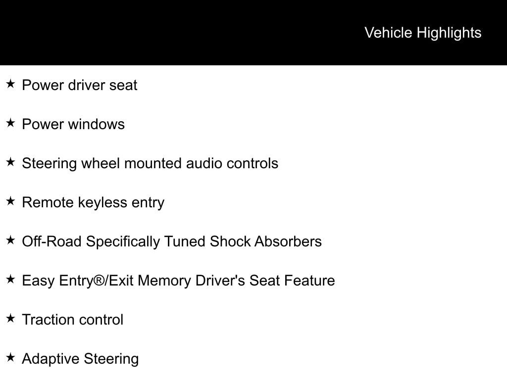 - Spare Tire Mount Location: Underbody w/crankdown