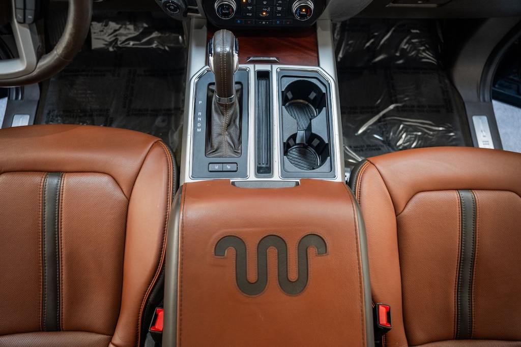 - Genuine wood/leather center console trim