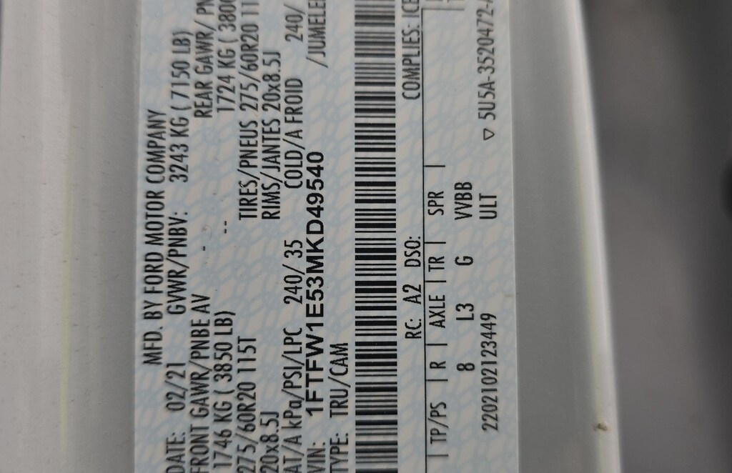 - Tire Pressure Monitoring System: Tire specific