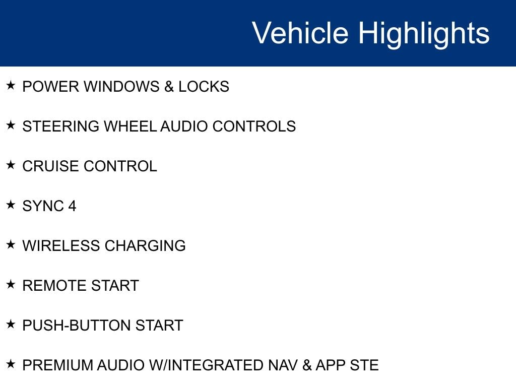 - Smart device integration: SYNC 4 AppLink/Apple CarPlay/Android Auto