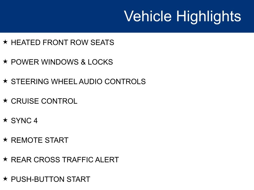 - Smart device integration: SYNC 4 AppLink/Apple CarPlay/Android Auto