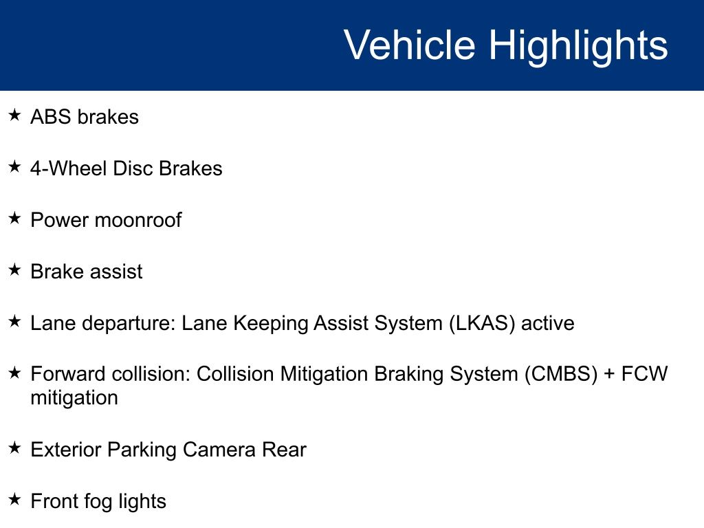 - Forward collision: Collision Mitigation Braking System (CMBS) + FCW mitigation