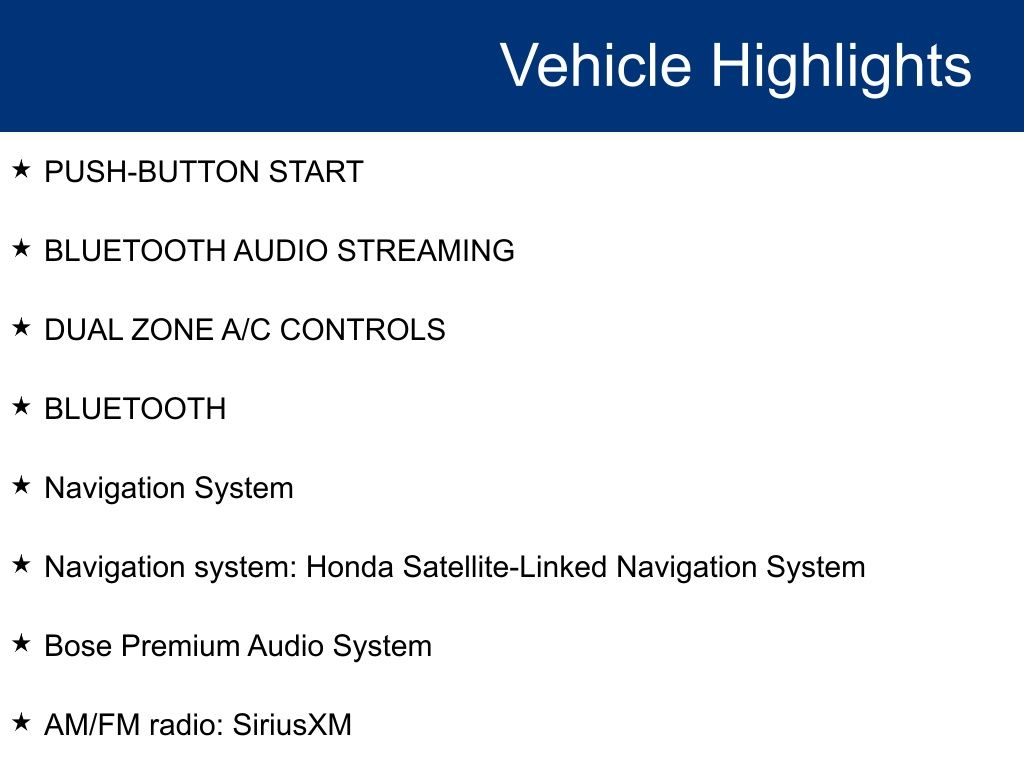 - Navigation system: Honda Satellite-Linked Navigation System