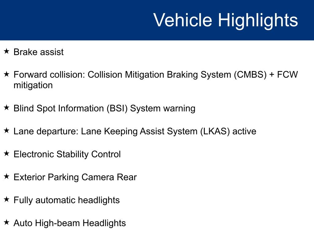 - Forward collision: Collision Mitigation Braking System (CMBS) + FCW mitigation